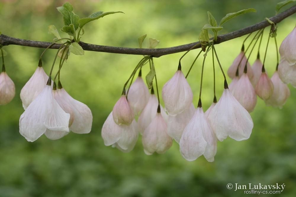 Čeleď: Styracaceae - sturačovité Barva květů: světle růžová, Místo: Dendrologická zahrada Průhonice