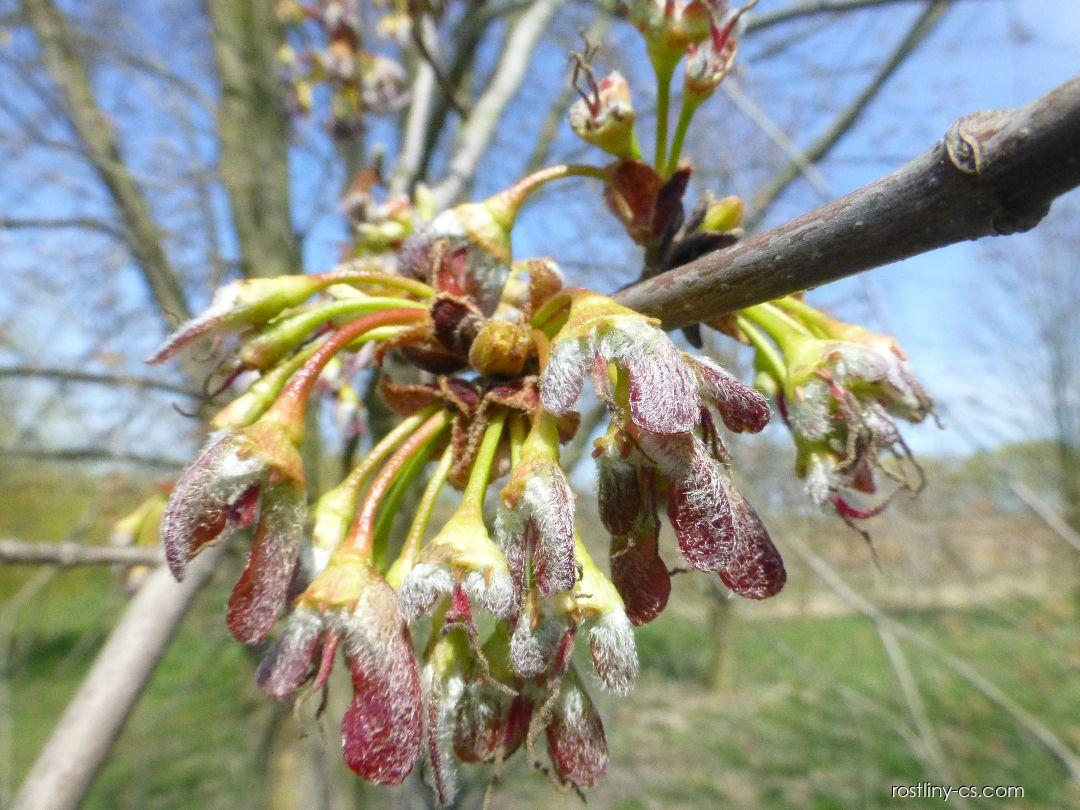 Javor stříbrný 'Pyramidale' - větve s květy (
